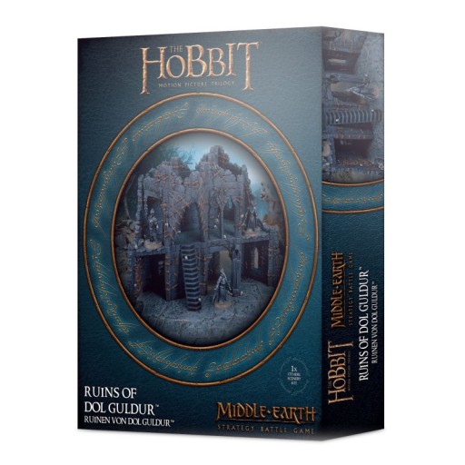 This terrain set contains a selection of plastic ruined scenery sections, themed on the dilapidated fortress of Dol Guldur – the Hill of Sorcery – in the southern reaches of Mirkwood.