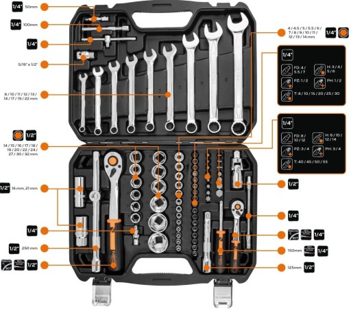 ТОРЦЕВЫЕ КЛЮЧИ NeoTools 10-059 1/2|1/4 [82 шт.]