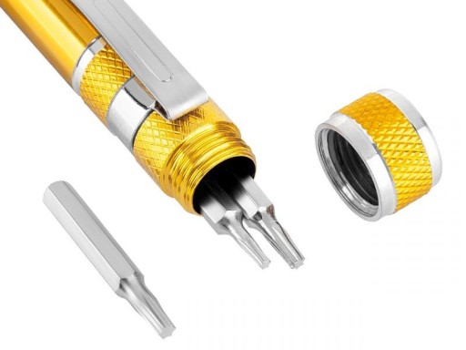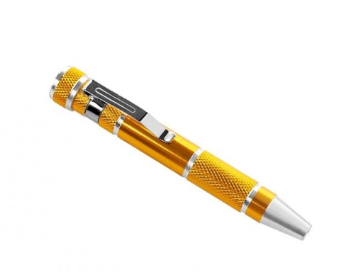 Kieszonkowy wkrętak precyzyjny to przydatne akcesorium nie tylko dla majsterkowiczów. Z powodzeniem sprawdzi się np. do wymiany baterii w zabawkach elektronicznych i innych naprawach. Niewielkie rozmiary sprawiają, że można go łatwo schować do torebki, a kształt długopisu z dodatkowym klipsem pozwala zaczepić produkt do kieszeni koszuli lub spodni, by mieć go pod ręką w każdej sytuacji.