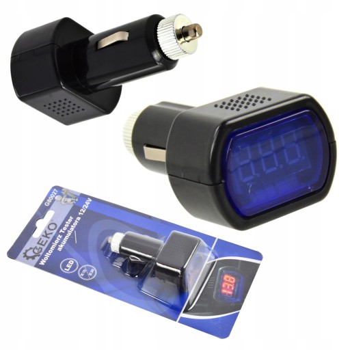 Testar akumulatora 12/24V (woltomierz) renomowanej marki GEKO. Woltomierz umożliwia kontrolowanie stanu naładowania akumulatora, pozwala również sprawdzić napięcie pracy alternatora. Urządzenie uruchamia się bezpośredni po podłączeniu do gniazda zapalniczki.