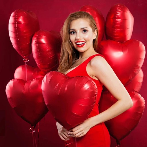✅ Czerwony balon w kształcie serca, foliowy do pompowania helem lub powietrzem.