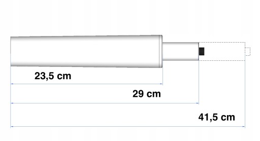 - Długość całego siłownika w najwyższym położeniu: 41,5 cm