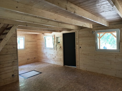 Dach i podłoga ocieplona wełną 10 cm.Drzwi zewnętrzne stalowe, wew.drewniane, ścianki działowe.