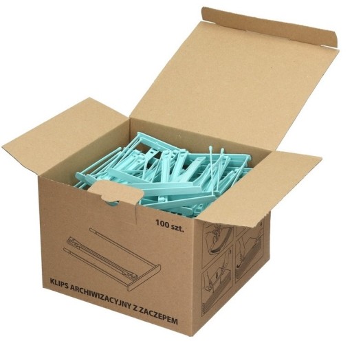 Klips archiwizacyjny jest niezastąpionym artykułem biurowym, wszędzie tam, gdzie archiwizowane są duże ilości dokumentów. Użycie klipsów archiwizacyjnych ułatwia przechowywanie dużej ilości dokumentów w szufladach lub pudłach archiwizacyjnych.