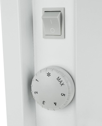 Posiada przełącznik włącz/wyłącz, a nad właściwą pracą urządzenia czuwa termostat bimetalowy umożliwiający ustawienie ośmiu różnych nastaw temperatury, podział mocy grzewczej 50-100%.
