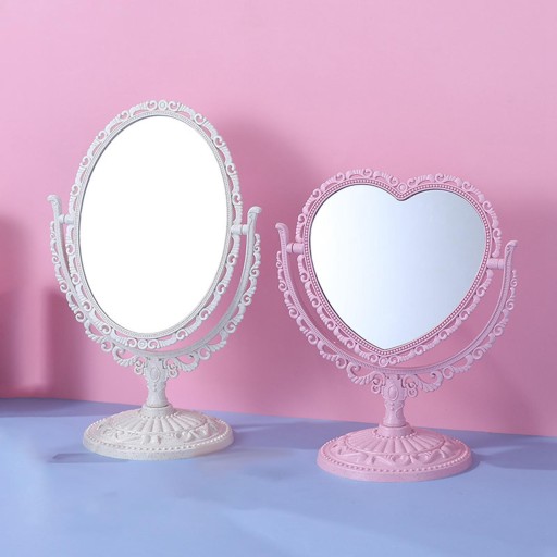Lusterko do makijażu na biurko Retro Europejskie na blat Sypialnia Biurko Serce Różowe