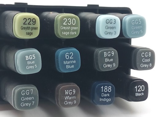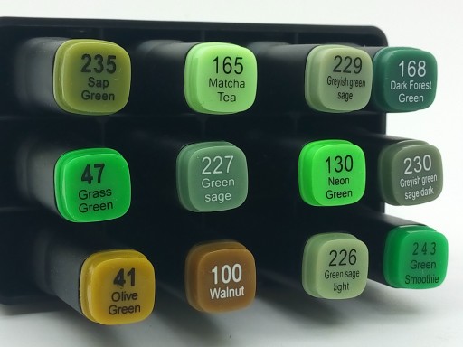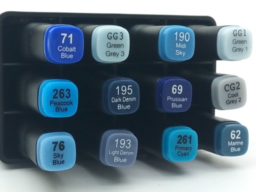 kolekcję o pisaki skomponowane wg odcieni.