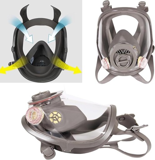 - Nasze maski pełnotwarzowe zapewniają szczelne zamknięcie, chroniąc Cię przed latającymi odłamkami oraz szkodliwymi gazami i dymem. Brzeg maski wykonany jest z dwuwarstwowego silikonu, który dobrze dopasowuje się do twarzy i zapewnia ścisłą ochronę.