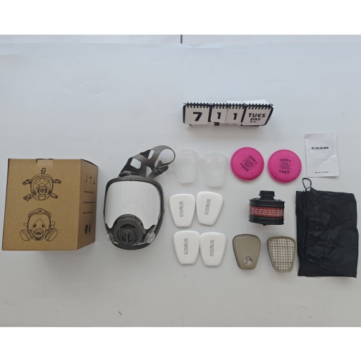 - Maska gazowa wyposażona jest w filtr z węglem aktywnym o średnicy 40 mm oraz filtr z węglem aktywnym o średnicy 6001 cm.
