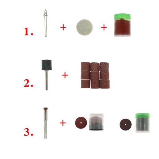 [Pakiet zawiera]Akcesoria obejmowały głównie papiery ścierne, tarczę polerską, wiertło, głowice szlifierskie i inne, akcesoria potrzebne do większości zadań ręcznych.