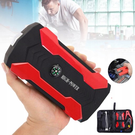 Power Bank 28000 mAh Car Jump Starter: Nasz przenośny power bank 28000 mAh może szybciej ładować urządzenia przez porty wyjściowe USB 3-w-1 i jest kompatybilny z prawie wszystkimi ładowarkami USB, w tym telefonami komórkowymi, tabletami, aparatami cyfrowymi i innymi urządzeniami elektronicznymi .
