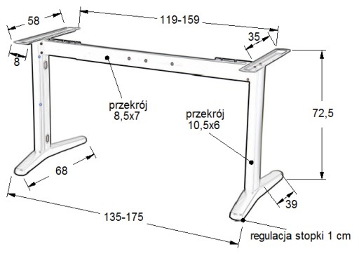 - nogi łączone rozsuwaną belką o długości 119-159 cm