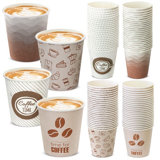 x100 KUBKI PAPIEROWE do KAWY HERBATY 4 wzory