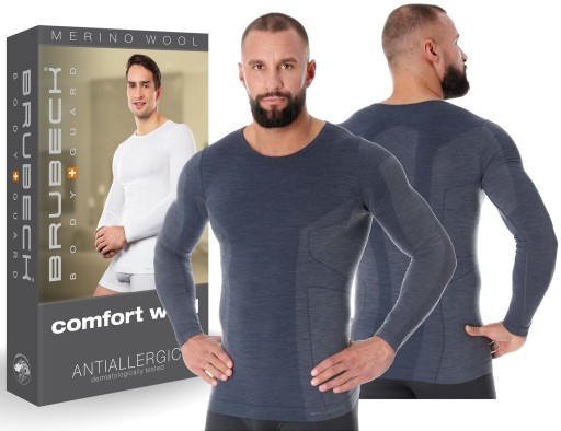 BRUBECK COMFORT WOOL | MĘSKA WEŁNIANA KOSZULKA TERMOAKTYWNA Z DŁUGIM RĘKAWEM DO CODZIENNEGO UŻYTKU