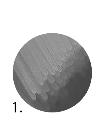 W sonicznej szczoteczce Herz Medical Instruments zastosowano specjalne włókna marki Dupont. Są one wykonane w technologii szlifowania hemisferycznego, dzięki czemu mają idealnie gładkie końcówki i nie powodują mikrourazów dziąseł podczas szczotkowania. Tym samym chronią przed odsłonięciem szyjek zębowych i paradontozą.