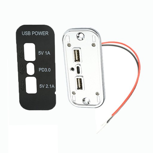 [3 porty do montażu na panelu]: Gniazdo wyjściowe USB obsługuje dwa porty USB (2,1 A 1 A) i PD 3.0 typu C, odpowiednie do ładowania telefonów, tabletów, aparatów fotograficznych itp.