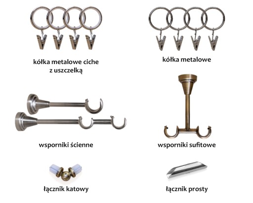 Produkt pasuje do wszystkich karniszy metalowych o średnicy rurki równej 19 mm.