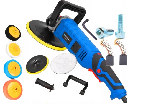 Polerka o mocy maksymalnej 1600 W, średnicy tarcz 180 mm oraz regulacją obrotów. W komplecie również zestaw 4 gąbek polerskich o średnicy 150 mm.