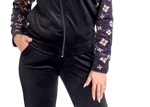 Komplet został wykonany z bardzo modnego, przyjemnego w dotyku welurowego materiału, który prezentuje się luksusowo.