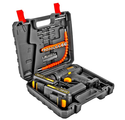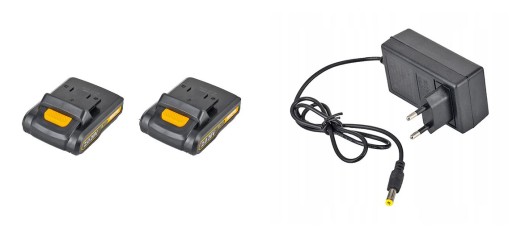 ✅ W zestawie znajdują się 2 akumulatory o pojemności 2Ah, które gwarantują nieprzerwaną pracę z wkrętarką.
