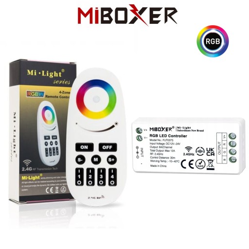 Odbiornik MiBOXER umożliwia sterowanie taśmą LED. Połączenie odbiornika z pilotem odbywa się przy pomocy fal radiowych o częstotliwości 2.4GHz. Odbiornik montowany jest pomiędzy taśmą LED a zasilaczem, dlatego można go dodać na każdym etapie montażu taśmy.