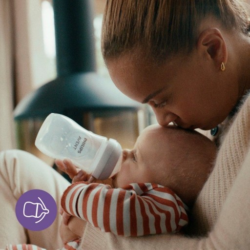 Szeroki, miękki i elastyczny smoczek w butelce Natural Response naśladuje kształtem i fakturą kobiecą pierś , co pozwala dziecku przyssać się i spokojnie pić. Smoczek wyposażony jest w zaworek antykolkowy , który utrzymuje powietrze z dala od brzuszka dziecka. Ogranicza to kolkę i dyskomfort.