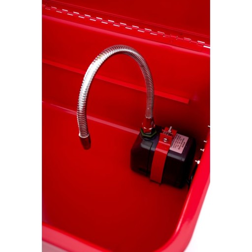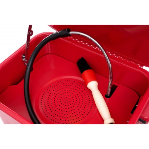 Praktyczna myjka warsztatowa marki Kraft&Dele model KD424 pracuje w obiegu zamkniętym. Płyn zostaje pobierany przez pompę z dna pojemnika i podawany pod ciśnieniem.