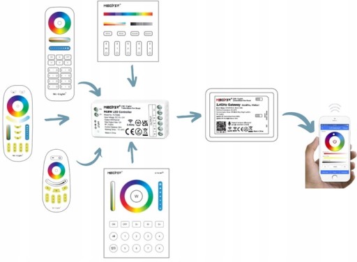 - ✅ Obsługa kontrolerów - FUT037, FUT38 oraz żarówek i innych typów oświet. firmy MILIGHT