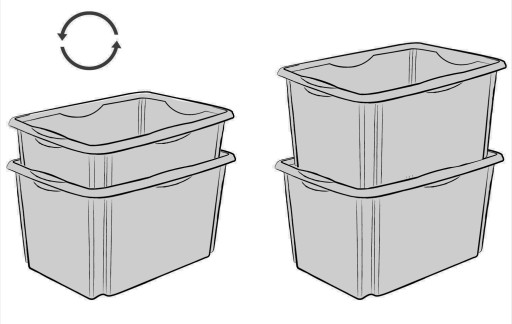Dzięki unikalnemu systemowi pojemniki można ustawiać bez pokrywy jeden na drugim lub wkładać jeden do drugiego po obróceniu o 180 stopni.