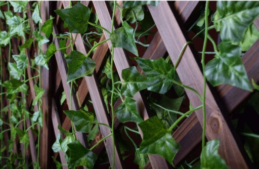 Sztuczny bluszcz idealnie sprawdza się w aranżacjach rozmaitych altan i pergoli. Jest doskonały do tworzenia zielonych ścian, ale spełnia swoją funkcję dekoracyjną również wtedy, gdy wsadzimy go solo do doniczki. Bardzo ciekawie wygląda rozpięty na drucianym stelażu, na okręgu, czy też gdy wisi tuż pod sufitem, a jego pędy swobodnie zwisają.