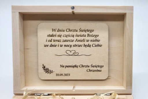 PREZENT NA CHRZEST ŚWIĘTY PAMIĄTKA PUDEŁKO PERSONALIZOWANE ŻYCZENIA