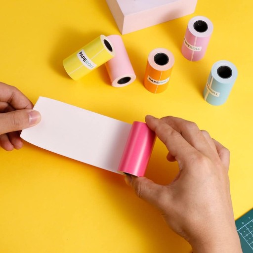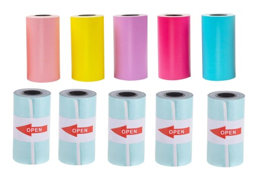 Zestaw 10 rolek po 3,5 m z KOLOROWYM I BIAŁYM PAPIEREM SAMOPRZYLEPMNYM do mini drukarek termicznych
