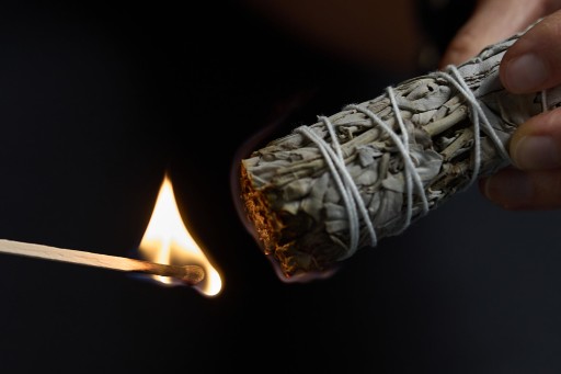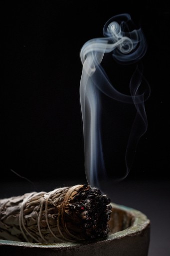 - Intencja oczyszczenia pomieszczenia ze złych wibracji – okrążamy pomieszczenie z dymiącym pęczkiem przeciwnie do ruchu wskazówek zegara