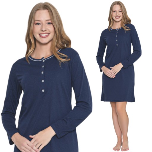 KOSZULA NOCNA DŁUGI RĘKAW BAWEŁNIANA GŁĘBOKO ROZPINANE