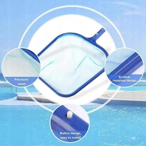 Wydajne czyszczenie: Walka z brudem w Twoim basenie może wydawać się niekończącą się walką. Ale dzięki odpowiedniemu narzędziu możesz zmienić to w 5-minutową pracę. Siatka na basen pomaga zbierać liście, koc chwastów, robaki, gruz i wszystko inne unoszące się na basenie. Zadbaj o długowieczność swojego basenu i daj sobie spokój!