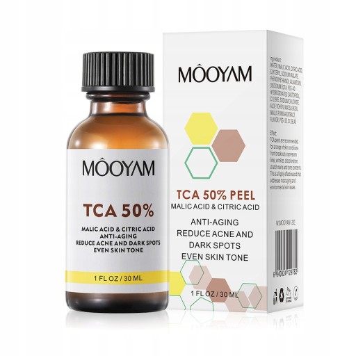 Potężne 50% stężenie TCA (kwas trichlorooctowy) zapewnia peeling o średniej głębokości w celu zwalczania przebarwień, głębszych zmarszczek, blizn potrądzikowych i uporczywych wyprysków