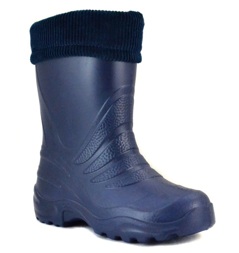 Kaloszki w całości wykonane z szybkoschnącej pianki typu EVA idealnie dopasowywują się do stopy. Sztruksowy wywijany kołnierz poprzez dokładne dopasowanie do nogi zapewni całkowitą suchość wewnątrz kalosza, dlatego bez problemu sprostają długim zabawom zwłaszcza przy deszczowej pogodzie.
