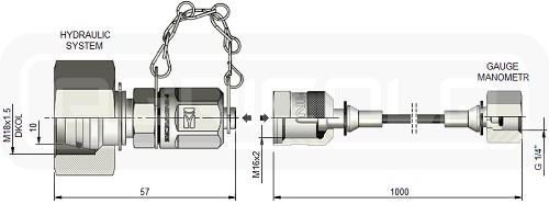 Przewód przeznaczony do pomiaru ciśnienia oleju w układach hydraulicznych zamkniętych, w których są warunki do wypracowania ciśnienia hydraulicznego. Pasuje do manometrów z gwintem zewnętrznym G1/4".
