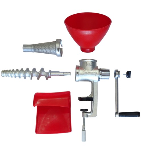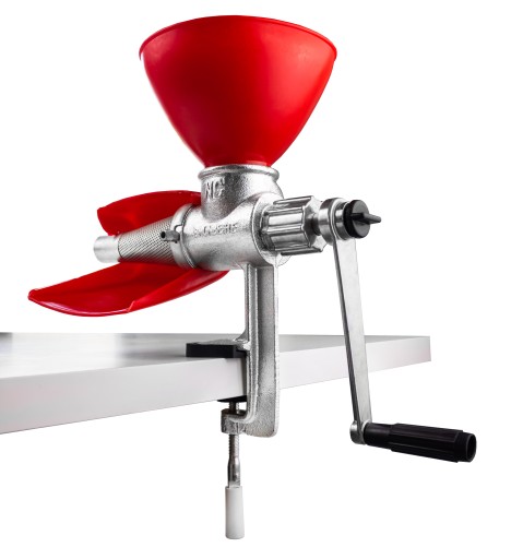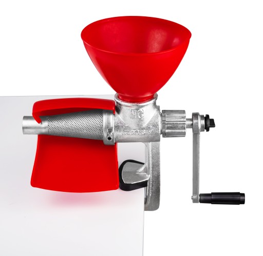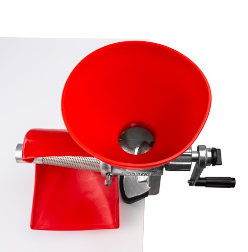 - Szeroki podajnik ułatwiający stosowanie pomidorów w młynku.