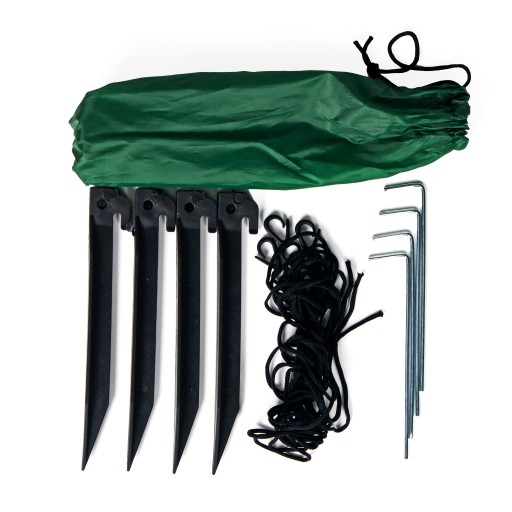 - W zestawie znajduje się linka i kotwy do różnego rodzaju podłoża.