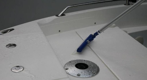 ŚCIĄGACZKA DO WODY - świetnie sprawdzi się na łodzi, w domu, kamperze, przyczepie kempingowej i nie tylko. Za pomocą ściągaczki łatwo usuniesz nadmiar wody z każdej powierzchni. Białe pióro ściągaczki nie zostawia żadnych śladów na dowolnej powierzchni. Listwa wykonana jest z wzmocnionego tworzywa sztucznego i gumy. Do połączenia ściągaczki z uchwytem wymagany jest adapter obrotowy 41938. Dzięki takiemu połączeniu można dotrzeć do trudno dostępnych miejsc, ścian, okien.