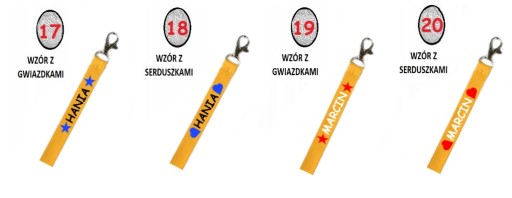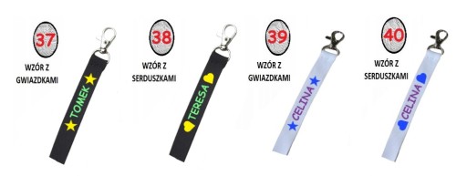 Ze względu na mniejszą powierzchnię do nadruku, na smyczy nadgarstkowej umieszczamy TYLKO IMIĘ lub IMIĘ + PIERWSZA LITERKA NAZWISKA.
