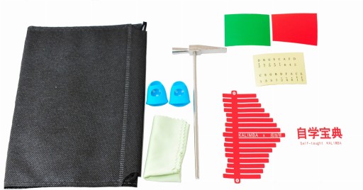 W zestawie: nakładki na palce, młoteczek do strojenia, naklejki, samouczek, ściereczki
