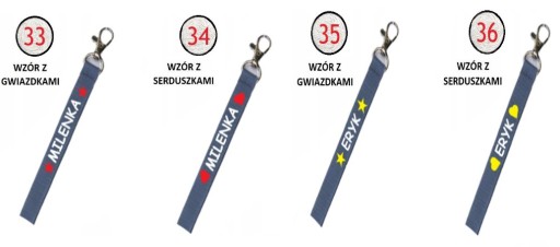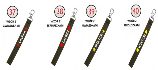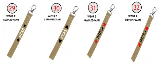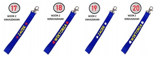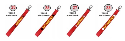 Ze względu na mniejszą powierzchnię do nadruku, na smyczy nadgarstkowej umieszczamy TYLKO SAMO IMIĘ - (bez dodatkowych literek)