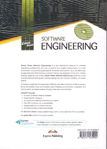 Software Engineering (Inżynieria oprogramowania) z serii Career Paths to podręcznik do języka angielskiego zawodowego dla osób zajmujących się inżynierią oprogramowania. Pozwala na zintegrowane rozwijanie czterech sprawności językowych przy jednoczesnym poznawaniu i ćwiczeniu słownictwa zawodowego. Książka może być wykorzystywana m.in. w technikach i szkołach branżowych – BRANŻA TELEINFORMATYCZNA.