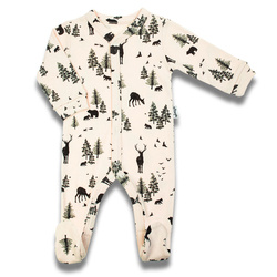 Mięciutki pajacyk dla chłopca z długim rękawem, zakończonym ściągaczem, a w nogawkach stópkami. Wykonany z bawełny drukowanej w wzór leśny przedstawiający zwierzęta: niedźwiedź, jeleń, sarna, ptaki pośród drzew. Materiał posiada certyfikat Oeko-Tex Standard 100 Tekstylia godne zaufania. Zapinany wzdłuż całego ubranka na wygodne bezniklowe napy, by ułatwić przewijanie. Idealnie sprawdzi się jako jedno z pierwszych ubranek maluszka. bawełna 100%