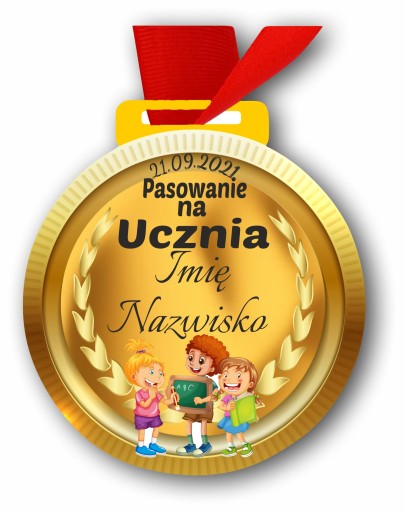 - oraz z jakiej okazji ma być medal pasowanie na ucznia, pierwszoklasistę , przedszkolaka.