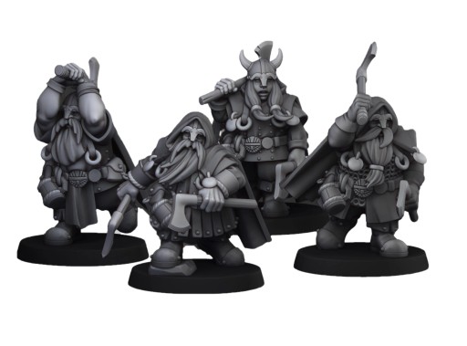 Oferujemy zestaw dziesięciu figurek Dwarf Rangers with Throwing Axes autorstwa Highland Miniatures, wydrukowany na drukarce żywicznej.