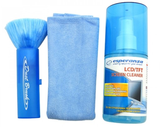 Zestaw czyszczący do monitorów i telewizorów LCD. Zestaw zawiera żel czyszczący, ściereczkę z mikrofibry i antystatyczną szczoteczkę. Skutecznie usuwa brud i kurz w telewizorach, laptopach, palmtopach, zestawach do nawigacji satelitarnej, monitorach, telewizorach LCD itp. Sposób użycia: niewielką ilość żelu nanieść na ściereczkę bezpyłową i czyścić monitor. Przed czyszczeniem sprzętu odłącz zasilanie. Żel nie zawiera alkoholu. Pojemnośc butelki z żelem: 200ml.