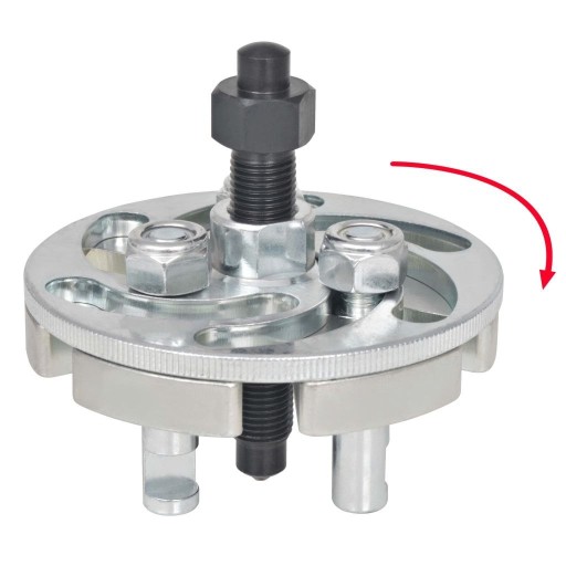Ten uniwersalny ściągacz jest idealny do zdejmowania kół pasowych i zębatych wałków rozrządu bez powodowania uszkodzeń. Narzędzie to można dostosować do różnych średnic kółek dzięki regulowanym ramionom chwytającym.